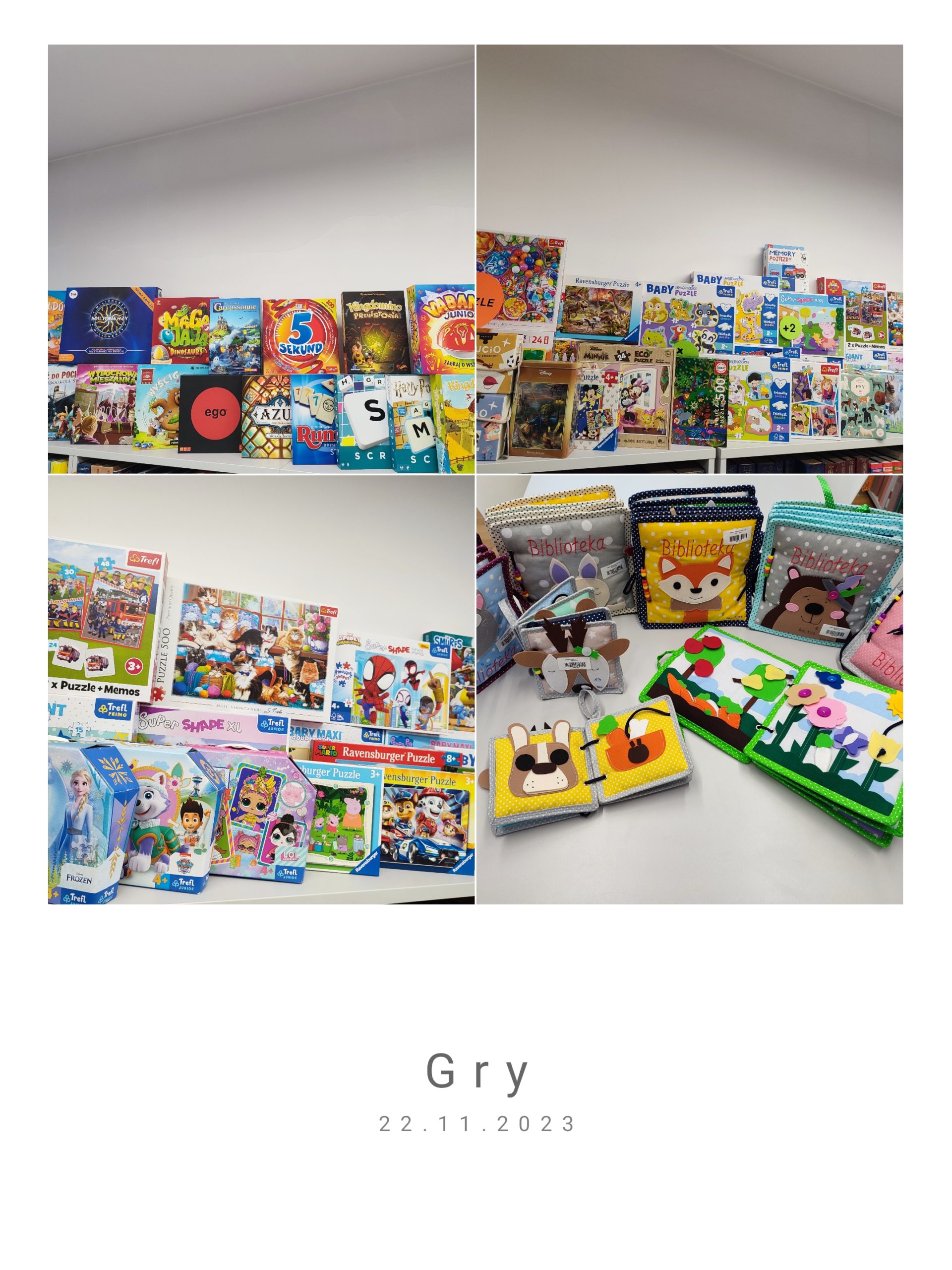 Biblioteczne zasoby gier ,puzzli oraz książeczek sensorycznych