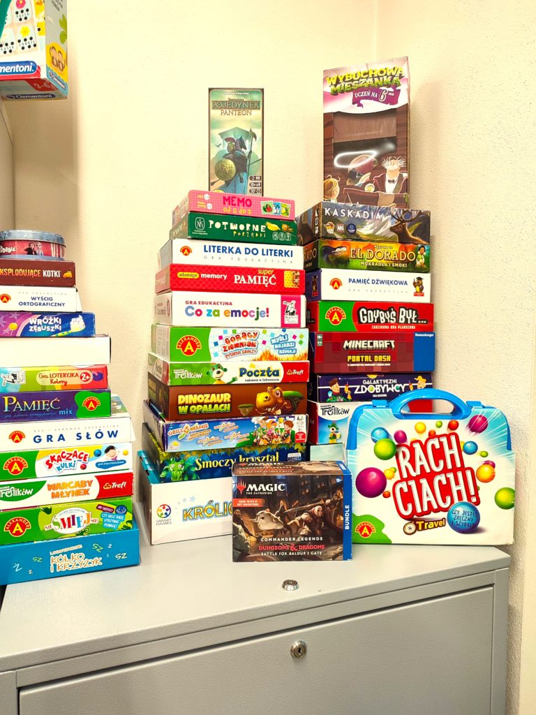Nasza biblioteka dysponuje szerokim wachlarzem ogólnodostępnych gier planszowych oraz strategicznych w różnych kategoriach wiekowych.