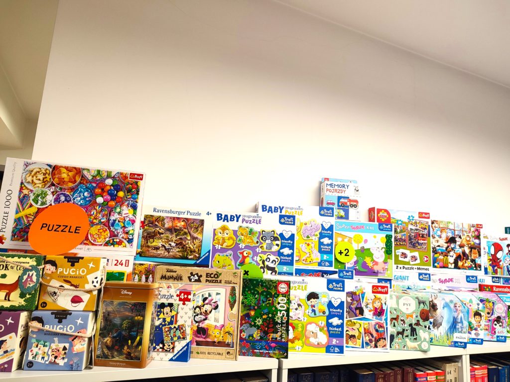 Biblioteczne zasoby gier ,puzzli oraz książeczek sensorycznych