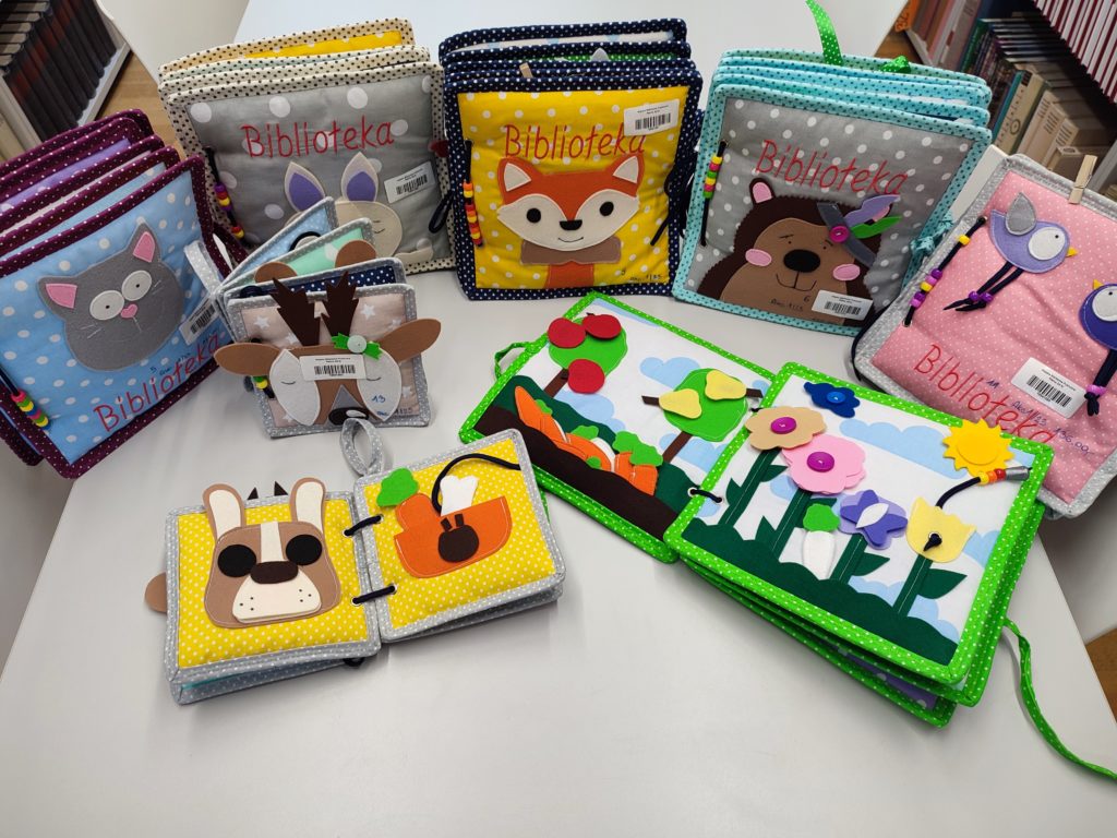 A także duży zasób książek sensorycznych dla najmłodszych mających na celu pobudzenie wyobraźni, poznawanie przedmiotów za pomocą zmysłu wzroku i dotyku, wszystkie bardzo pięknie i starannie wykonane z zachowaniem najmniejszego detalu, tak aby nasi najmniejsi czytelnicy od maluszka mogli poznawać magię książek oraz związane z nimi przygody.