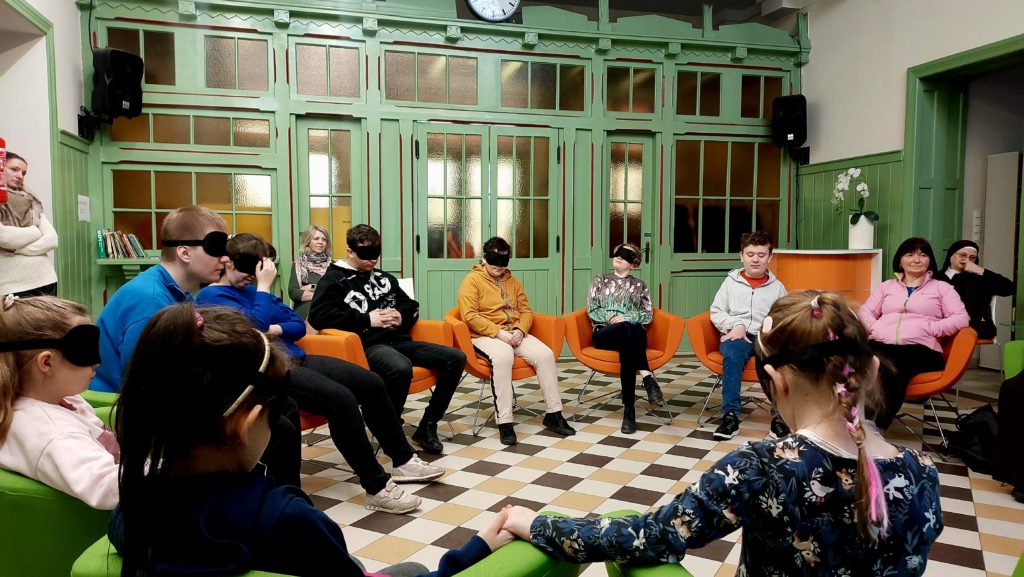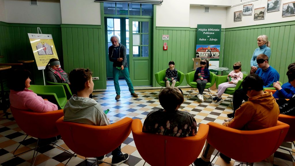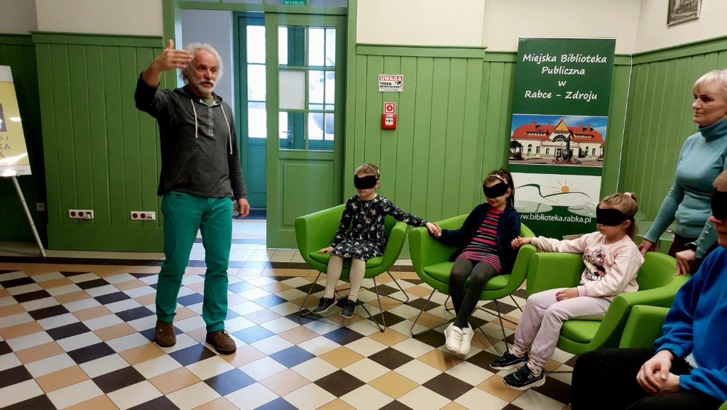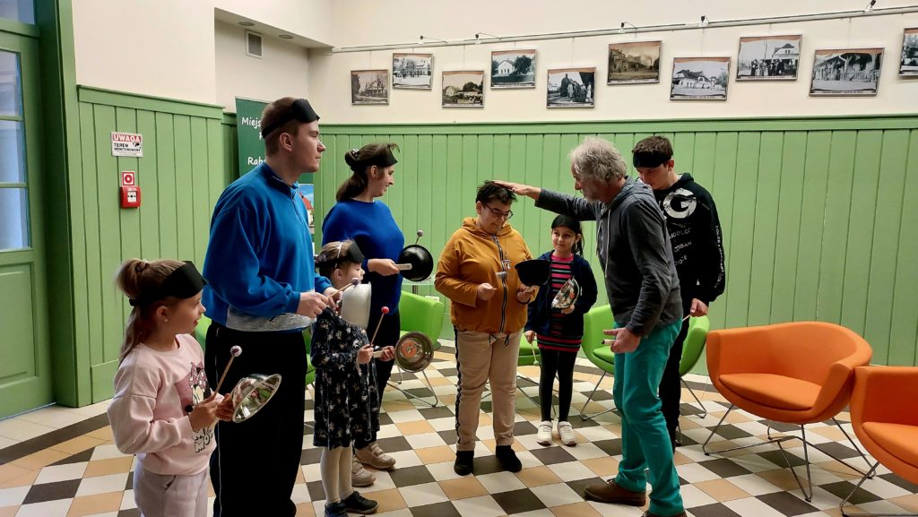 W dniu dzisiejszym w ramach projektu „Kultura bez barier” odbyły się warsztaty muzyczne- „Świat dźwięków” z panem Piotrem Koleckim. W warsztatach udział wzięły dzieci ze Szkoły Szkoła dla Dzieci Niewidomych i Słabowidzących w Rabce-Zdrój oraz Przedszkole Miejskie nr 1 w Rabce-Zdroju. W trakcie warsztatów połączyły się dwa światy – dzieci widzących i tych z niepełnosprawnością wzroku. Była to doskonała lekcja dla dzieci z Przedszkole Miejskie nr 1 w Rabce-Zdroju, że patrzeć można nie tylko wzrokiem, a z ciemności można wydobyć kształty i dźwięki.