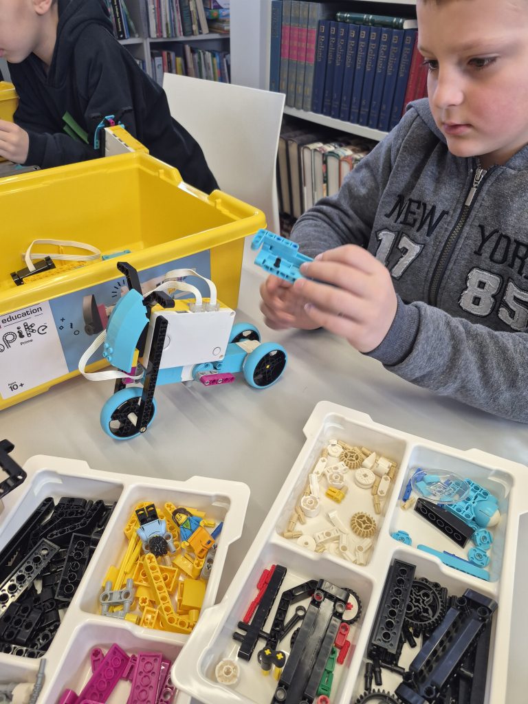 Dzieci tym razem stanęły na wysokości zadania, budując z klocków rower z rowerzystą, jak się okazało zadanie nie było takie proste, ale determinacja i zaangażowanie dzieci w projekt wzięły górę i modele były gotowe na czas. Programowanie też okazało się frajdą dla dzieci , gdyż pochłonęło ich wybieranie z wielu opcji które mogły wykorzystać aby wprawić swoje roboty w ruch.